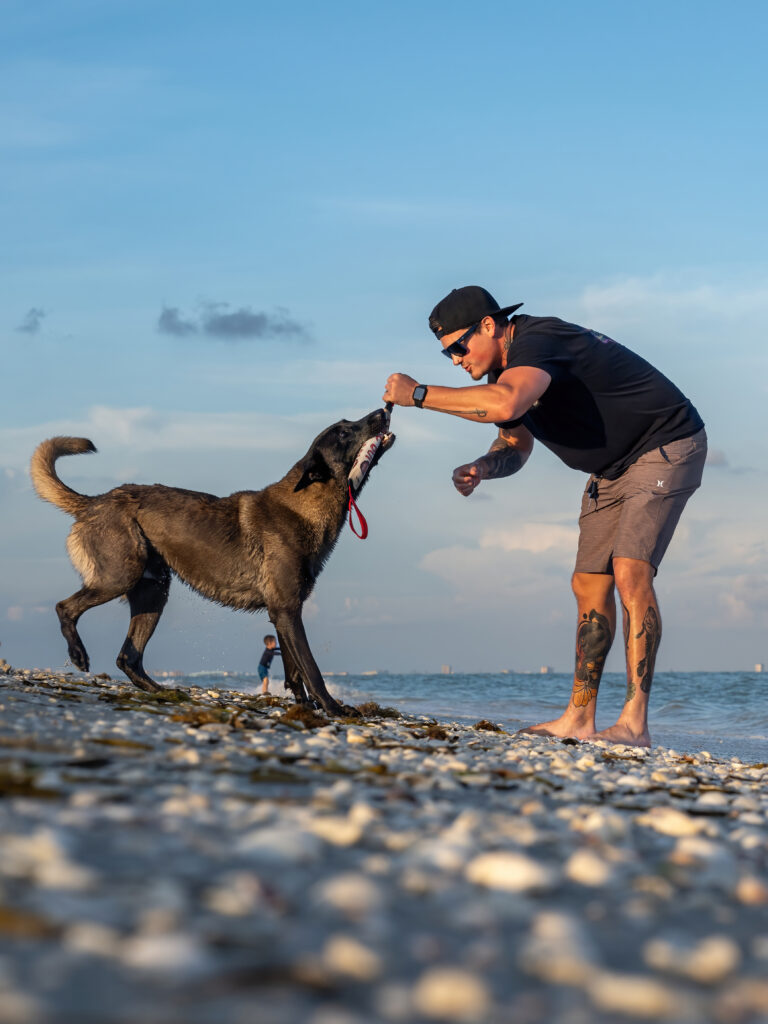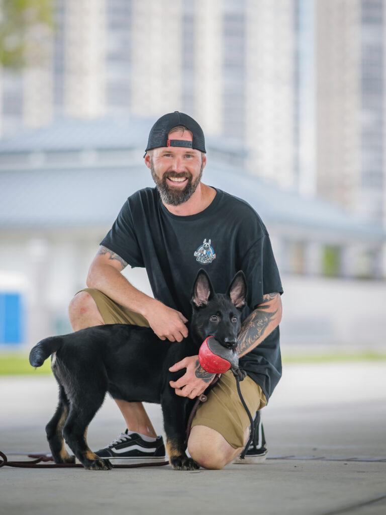 Christine has been professionally training since 2011. After graduating from National K-9 School for Dog Trainers, she began training service dogs for veterans with PTSD, successfully placing over 150 dog and handler teams. Raised in a military family, discipline, structure, and accountability have always come naturally. Over the years, Christine has continued her education through multiple advanced training programs, most recently completing Ivan Balabanov’s Training Without Conflict with her husband, Dirk. She specializes in working with challenging and “problem” dogs, bringing clarity, structure, and a better relationship with your dog! As the owner of Off Leash K9 Training SWFL, her goal is to create dogs and owners who trust each other-blending structure, engagement, and play to produce results that hold up in the real world.